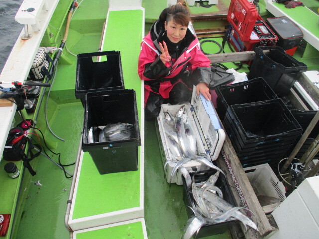 午前ライトアジ船 16~28cm 17~31匹 午前タチウオ船 80~100cm 6~24本 午後フグ船 18~38cm 0~2匹 タチウオ&ライトアジ船 タチウオ⇒80~100cm 18~20本 アジ⇒20~30㎝…