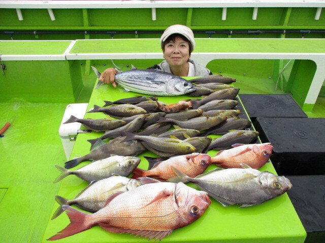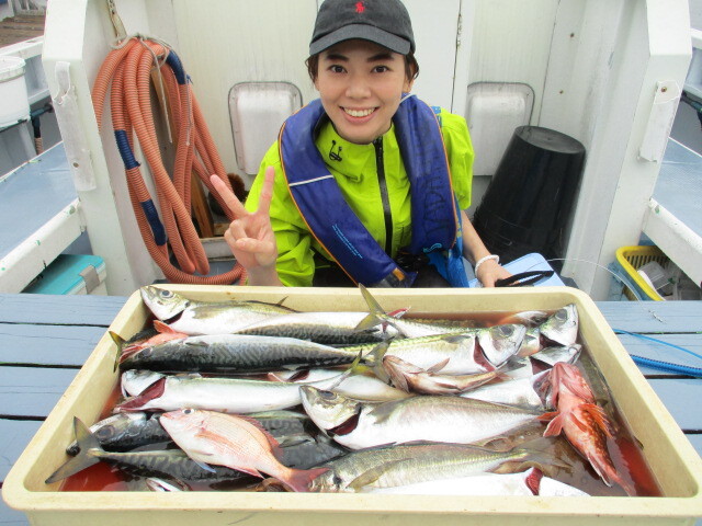 午前ライトアジ船 16~28cm 5~36匹 午前ウィリー五目船 18~42cm 5~35匹 魚種:サバ・アジ・マダイ・ムシガレイ・根魚など 午前シロギス船 14~24cm 4~20匹 他魚種…